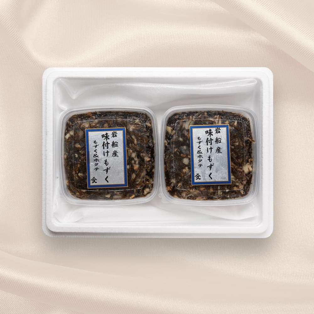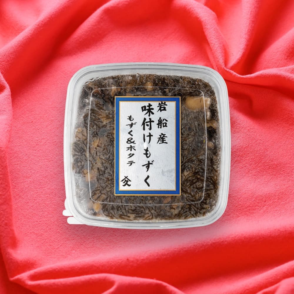 山北港で水揚げされた新鮮なもずくに、青森産ホタテを贅沢に合わせ、弊社独自の味付けで仕上げました。豊かな風味とまろやかな旨みが特長で、「美味しい!」とのお声を多数いただいております。リピーターの多い、当社自慢の人気商品です。